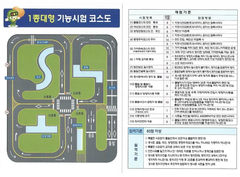 신호 위반, 중앙선 침범, 급정거 같은 건 바로 실격이니 주의하세요.