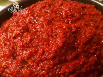 젓갈을 넣을 때는 반드시 체에 걸러서 사용하세요. 새우젓에 들어있는 단단한 껍질이나 이물질이 섞이면 식감이 거칠어집니다.